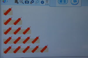 1年生算数科の学習です。 計算カードを使っています。表に計算、裏に答えが書いてあります。 答えが「11」になる足し算は、どんな計算か、黒板に書いてあります。 これを見て、気づいたことを発表しています。 「2,3、4・・・ […]
