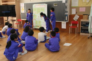 4年生が「総合的な学習の時間」で、これまで調べ、まとめてきたテーマ「環境」について、 グループごとに発表を行いました。発表内容はグループごとにそれぞれです。 「地球温暖化をとめる」「気候変動とは」「海洋汚染をなくしたい」 […]