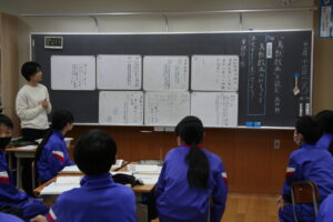 6年生国語科の学習です。鳥獣戯画は平安時代末期から鎌倉時代に描かれた絵画です。その絵画を読むという教材文です。 今日の学習課題は、本文から「鳥獣戯画を読む」の魅力を伝えようです。 子供たちは、グループになり、それぞれの魅 […]