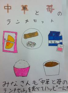 今日はその第1回目で、「中華と苺のランチセット」「ナンチャッテランチ」「うますぎてブラボーランチ」の3つのグループが発表しました。少しでも印象に残るように、ネーミングや発表の仕方を工夫していました。献立の内容は、お子さんに聞いてみてください。