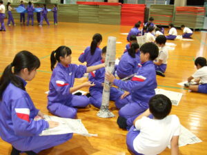 〇新聞タワー(新聞紙を使い、高さを競います)