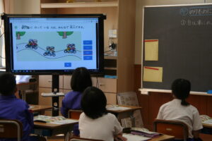2年生の算数科の学習です。 モニターに道路が映し出され、その道路を自転車にのった人が通り過ぎていきます。(動画です) 自転車に何人乗っていたでしょう、が問題でした。 2人ずつ、自転車に乗っていいたため、 子供たちは、「2 […]