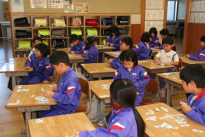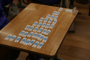 計算カードを使っています。表に計算、裏に答えが書いてあります。