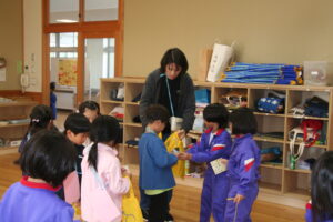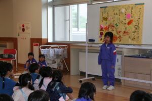 1年生の子供たちが、来年度入学する いいの保育所の年長児を招いて、集会を行いました。