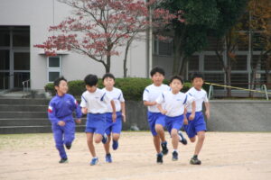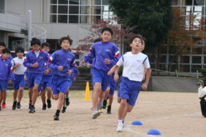2限に2、4、6年生が、3限に1、3、5年生が持久走大会を行いました。