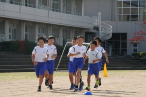 持久走を見学している学年は、他学年を応援しており、皆これまでの練習の成果を発揮していました。頑張っている子供たちの様子をご覧ください。