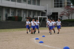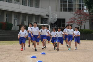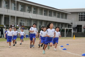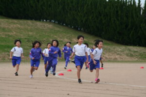 持久走を見学している学年は、他学年を応援しており、皆これまでの練習の成果を発揮していました。頑張っている子供たちの様子をご覧ください。