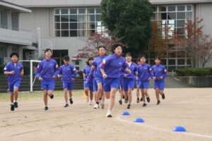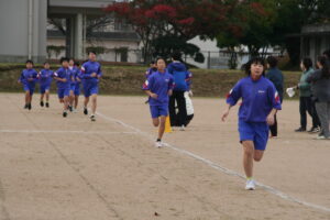 2限に2、4、6年生が、3限に1、3、5年生が持久走大会を行いました。