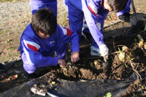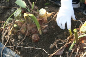 好天に恵まれ、6月に植えた里芋の収穫の時期となりました。