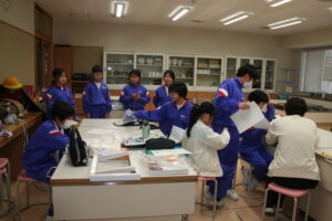 グループごとに順番を決めて、卓球やバドミントン、おもしろ実験等のクラブを見て回りました。