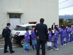 3年生の社会科の郊外学習です。くらしの安全を守る社会の仕組みとして、入善消防署と入善警察署の見学をさせていただきました。