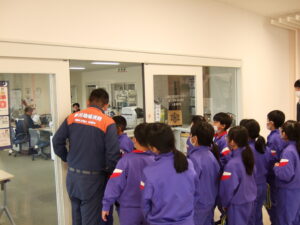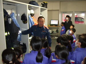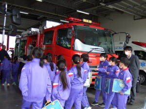 3年生の社会科の郊外学習です。くらしの安全を守る社会の仕組みとして、入善消防署と入善警察署の見学をさせていただきました。