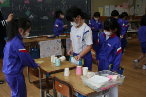 2年生は、自分たちが作ったおもちゃで1年生が遊んで楽しんでいる姿を、喜んでいました。