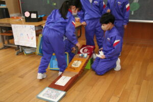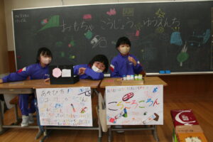 1年生が2年生の作ったおもちゃで遊ぶのです。
