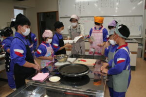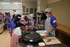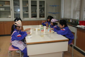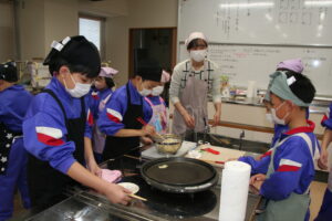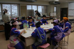 家庭科室横の廊下を通ると、ほんのり甘いにおいがし、覗いてみると、子供たちが楽しそうに
