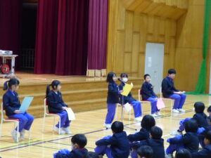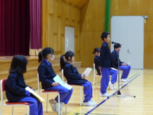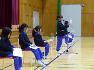 始業式の後、各学年代表児童の「がんばりたいこと」の発表がありました。