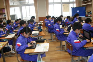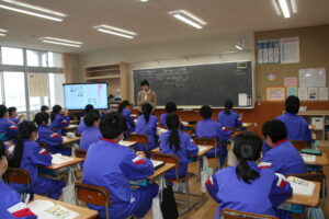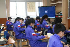 教科書の教材(大空を飛び立つ鳥)では、「町会の子供スキーの宿泊会において、昨年はルールが厳しかったため、今年は自由にしたところ、問題が起きたため、昨年とおりのルールに戻した」という内容を受けての授業でした。子供たちは、自分たちの学校生活でも同じようなことがないかを思い返し、「自由」について、タブレット端末を用いて自分の考えを書き、考えを深めていました。