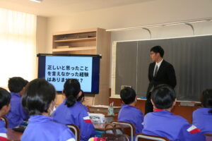 中心発問は、良太は、なぜ1回目の判断と違い、2回目のような判断をしたのか、ということでした。子供たちは、判断する自信や周囲のことを考えて等、多様な観点から自分の意見の発言をしていました。そして、自分たちの体験と関わらせて考えることができました。