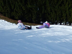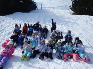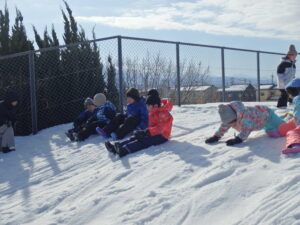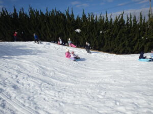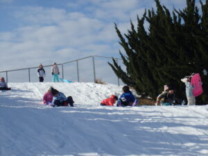 がよく滑ります。ということで、1年生が体育の時間に雪遊びでそりを楽しみました。