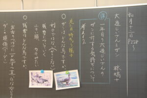 一人ひとり思いを話し合ったあとに、「ガン」とはどんな鳥かを調べ、イラストに描いていました。ガン と ハヤブサ の特徴を思い描き、読み取りに生かしていく学習になりました。