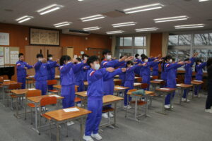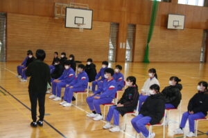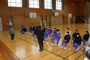 その後、体育館で実際の場所に座り、動きの確認をしました。