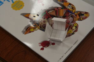 4年生は、立方体、直方体について、展開図を書きながら、実際に立方体を組み立てています。