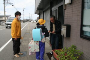 その後、みんなで一緒に下校し、近くの「こども110番の家」に、一年間お世話になった感謝の気持ちを伝え、お礼の手紙を渡しました。