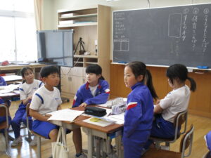 3年生の国語科の時間は、「力を合わせて、ばらばらに」という学習でした。テーマから思い浮かべたものの特徴を聞いて予想し、全員が別のものをあげて、ばらばらの回答になればよいという学習です。「緑色の野菜」「クリスマスと言えば […]