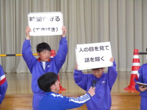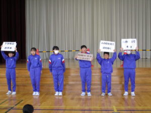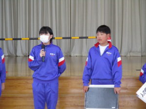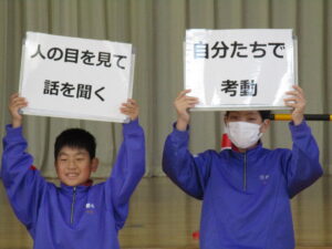 4月21日からは、いよいよ町体育大会の練習がスタートしました。練習前には、6年生が前日の話し合いの内容を全体に伝えました。自分たちで決めたルールを意識し、集中して練習に取り組む姿が見られました。